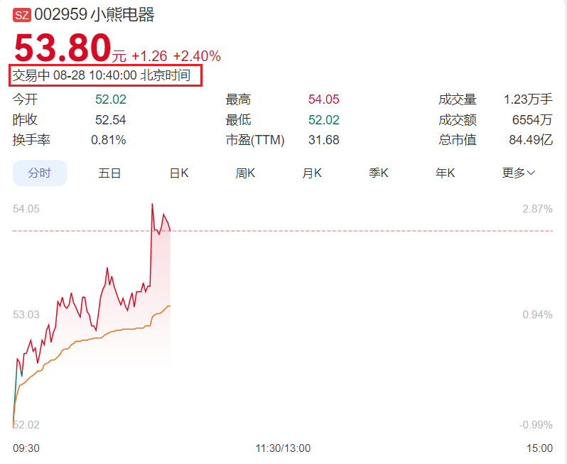 正所谓“春江水暖鸭先知”,在资本市场,小熊电器曾创造过258.80亿元的巅峰市值,股价一度狂飙至165.9元,而截至本文发稿前,小熊电器的最新市值为84.49亿元,实时股价53.80元,较巅峰期缩水近7成。